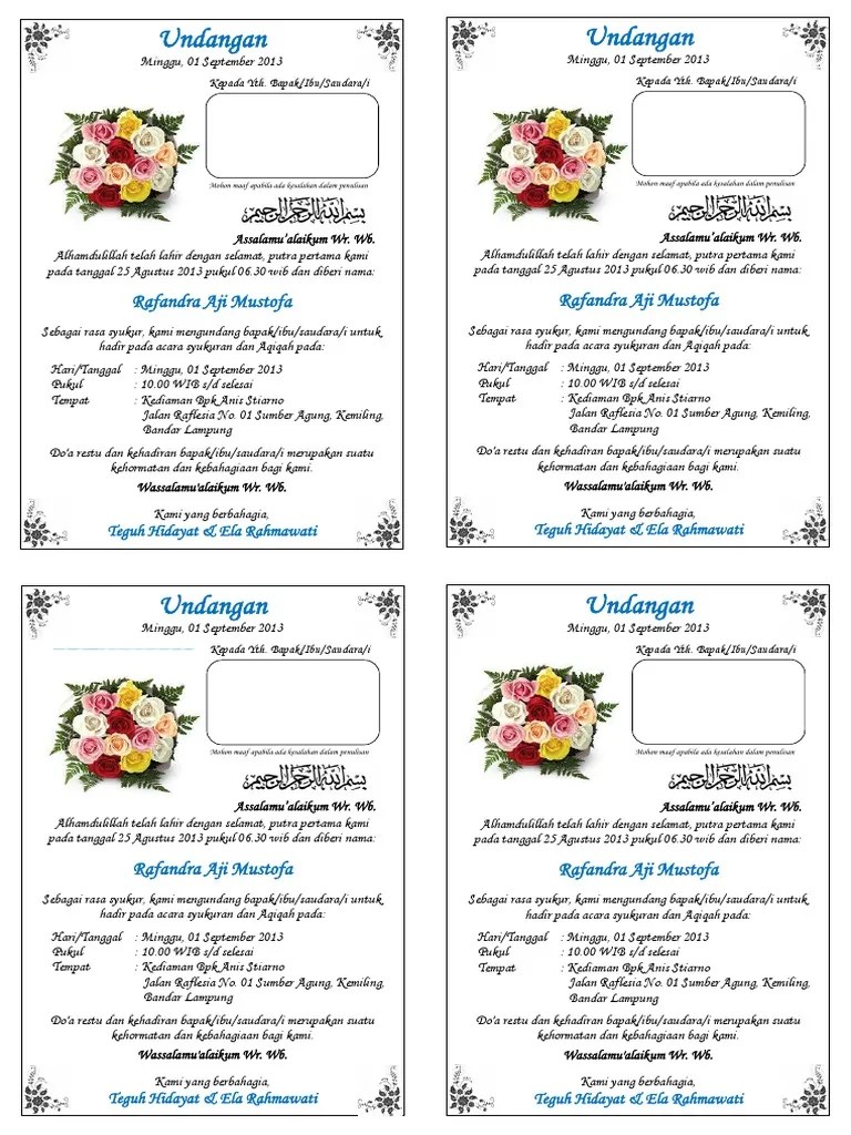 Contoh undangan aqiqah simpel versi word doc kertas a4 dibagi 4 undangan cv. Download undangan aqiqah ukuran setengah f4 folio hvs flsc. Belanja online kartu ucapan aqiqah bayi terbaik, terlengkap & harga termurah di lazada indonesia | bisa cod. Tahlil tinggal download trus edit trus print dehh kertas ukuran f4 hvs. Contoh undangan pernikahan kertas hvs undanganperkawinan net undangan .